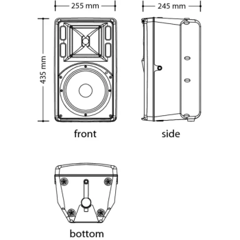 Recinto acústico pasivo, 2 vías. 120W AES. Respuesta en frecuencia: 75-18.000Hz (±3dB). LF 1 woofer de 8" con bobina de 2"; HF motor de compresión 1" con bobina de 1,3". Max SPL 120 dB. Cobertura 80º x 60º, Frecuencia Crossover 2.000 Hz. Conexiones de entrada NL4 SpeakON. Peso 8 kg. Dimensiones (WxHxD) 255 × 435 × 245 mm. Acabado en color negro.