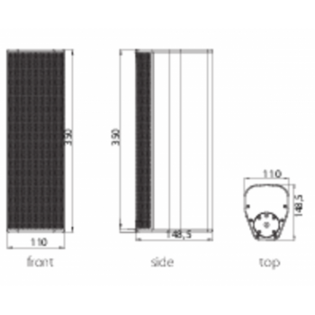 Recinto acústico tipo columna para interior,, 100 W RMS, 8 Ohms; 115º x 20º, 135 - 17.000 Hz, 4 woofers de 3" y motor de 0,75", 92 dB @1W/1m, 108/114 dBs. Conectores de entrada 4 polos in/out. Peso 5,8 kg. Dimensiones 110 x 350 x 148,5 mm. Acabado en color blanco.