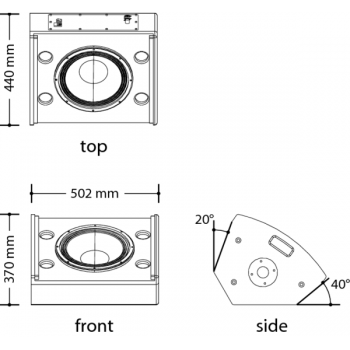 Monitor de escenario pasivo, 2 vías. 250W AES. Respuesta en frecuencia: 65-18.000Hz (±3dB). LF 1 woofer de 12" con bobina de 2,6"; HF motor de compresión 1" con bobina de 1,3". Max SPL 127 dB. Cobertura 80º x 80º, Frecuencia Crossover 1.700 Hz. Conexiones de entrada NL4 SpeakON. Peso 17 kg. Dimensiones (WxHxD) 502 × 370 × 440 mm. Acabado en color negro.