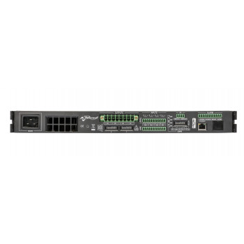 Etapa de potencia clase D para instalación con DSP. 4 canales de 300W con selector a 4 Ω o línea de 100V por canal. 1U rack.
