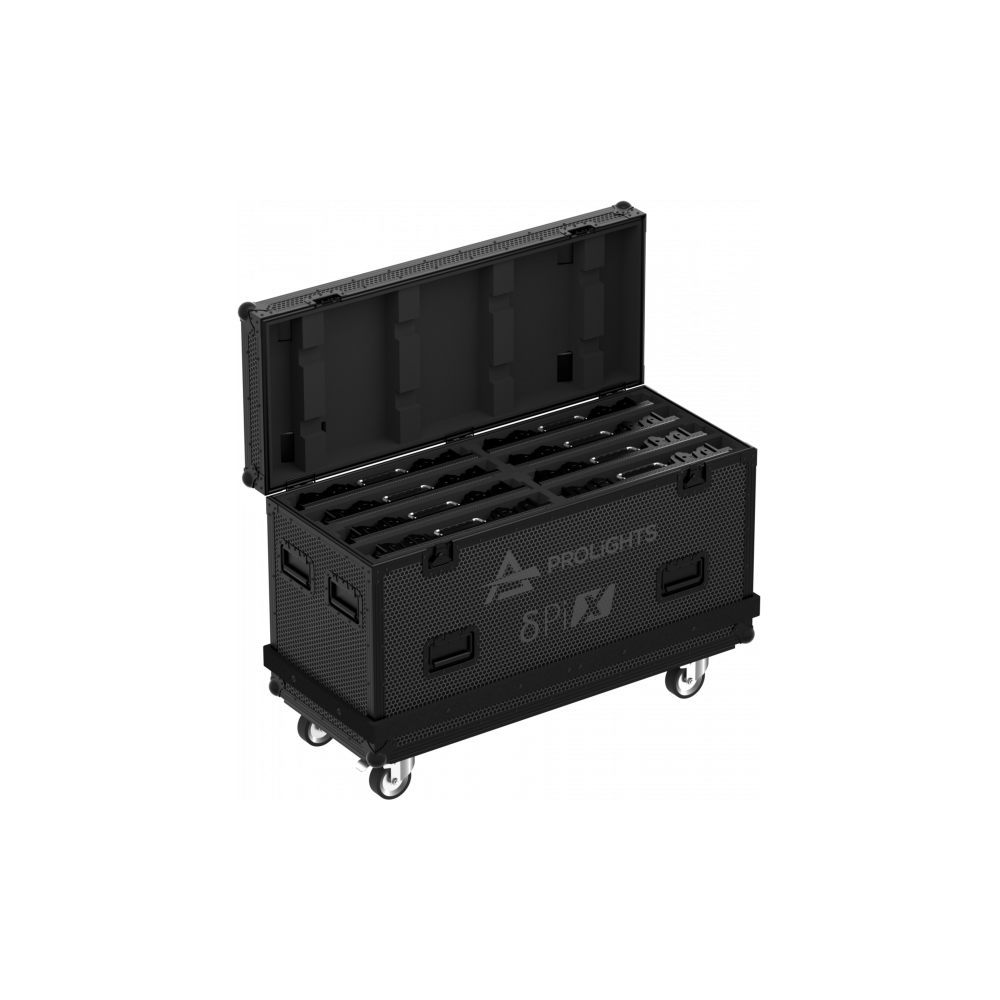 Flight-Case con ruedas y compartimientos para transportar 8 cabinets deDELTAX29B de forma segura.