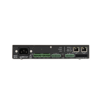 Amplificador 1/2 unidad de rack para instalación con DSP y conexión AES67. 4x 150W con selector de baja Impedancia o 100V. La potencia total (600W) puede distribuirse de forma desigual entre los canales pudiendo llegar a asignar toda la poténcia a un solo canal. Función "Auto Setup" para optimizar la ganancia, la limitación y el HPF para los altavoces conectados con solo pulsar un botón. Conexión Ethernet para control y monitorización. Incluye soportes y adaptadores para montaje en rack y pared.