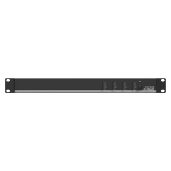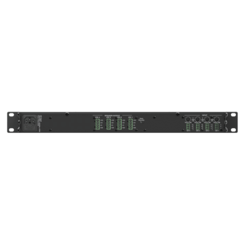 Amplificador 4 x 80W en línea de 100V y 4 Ohms. 4 entradas con posibilidad de conectar en cadena mediante interruptores. Fuente de alimentación conmutada. Amplificador clase D. Refigeración por convención. Energy Star con interruptor de activación. Entradas y salida Euroblock. 1U.