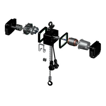 Motor de elevación de cadena de 350kg de control directo con categoría D8+ y clase FEM 2m. IP55. Factor de seguridad 8:1.