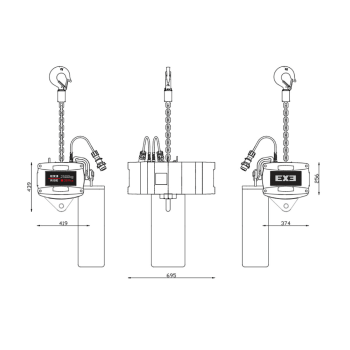 Motor de elevación de cadena de 2500kg de control por bajo voltaje con categoría D8+ y clase FEM 3m. IP55. Factor de seguridad 8:1.