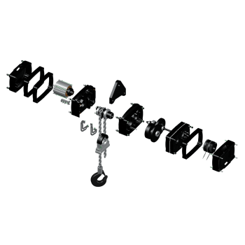 Motor de elevación de cadena de 250kg de control por bajo voltaje con categoría D8+ y clase FEM 2m. IP55. Factor de seguridad 8:1.