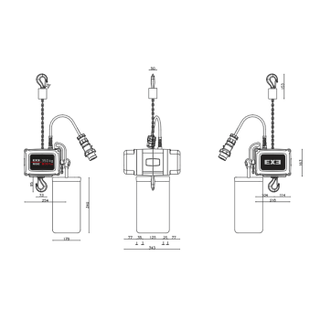 Motor de elevación de cadena de 350kg de control directo con categoría D8+ y clase FEM 2m. IP55. Factor de seguridad 8:1.