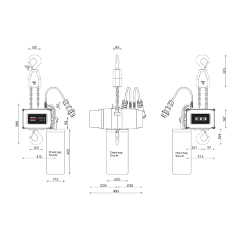 Motor 2000Kg D8+ 8:1 sin final de carrera, Doble freno. 2 ramales de cadena 8 x 24mm. 4m/min. Control Directo 4.83A. Large frame. fem 2m