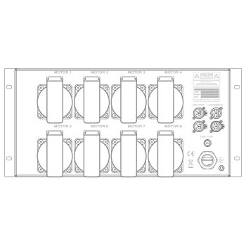 Controlador enlazable 8 Canales de 4A para motores DC. Conexión 8x cetac 16A 6H 3P+T 400VAC. 5U Rack.
