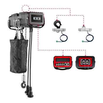 Este elemento, junto a una célula de carga tipo gancho permite la monitorización cableada a tiempo real de la célula de carga a través del software.