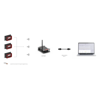 Este elemento junto a una célula de carga tipo gancho permite la monitorización inalámbrica a través de servicio real time de la célula de carga.
