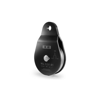 Polea universal tamaño medio. Soporta hasta 1 tonelada con un factor de seguridad de 8:1.