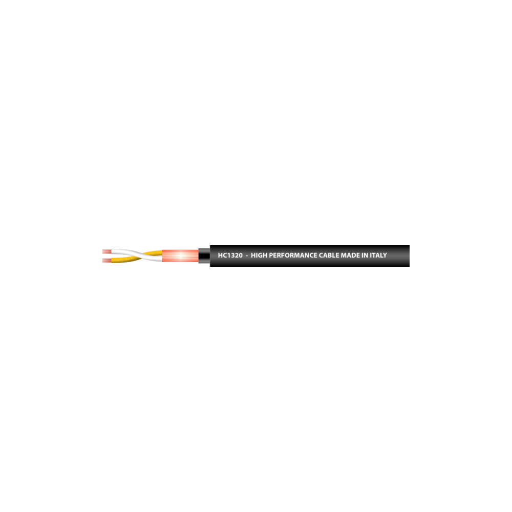 Cable balanceado para micrófono, 90% de blindaje, cobre O.F.C., 6,7mm de diametro exterior. AWG22, 2x40x0,10 mm. Precio por metro, se vende en rollos de 100mtrs. Color negro.