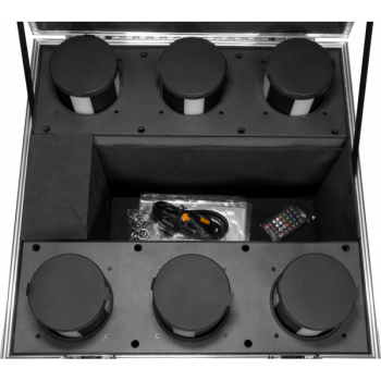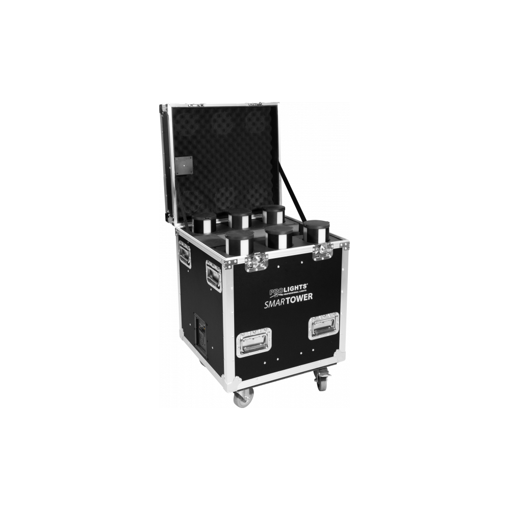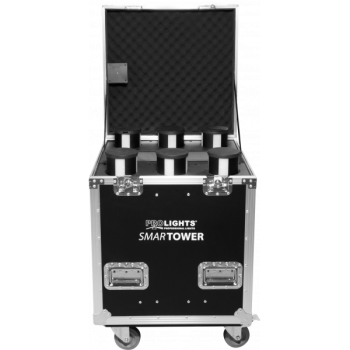 Flight-Case con 6x Luminaria decorativa a batería MultiLed con 4 líneas de 60x0'25W RGB IP65, más 1x Mando IR y Cable PowerCON. Cada SMARTOWER tiene Temperatura de color variable de 2.600°K a 10.000°K. Diseñado para crear un punto de luz dinámico incluso en caminos al aire libre, que lo hace ideal para Cocteles en Jardines, alfombras rojas e incluso como elemento decorativo en Eventos corporativos. Además incluye macros de los 12 Pixels individuales que lo dotan de increíbles efectos visuales con colores vivos y luminosos. Dimmer y Shutter con macros pregrabadas con velocidad ajustable. Rueda Color Virtual con presets seleccionables también de forma manual, así como Macros de efectos y patrones en los Pixels pregrabados. Protocolo DMX512 inalámbrico de Wireless Solutions y mando IR. Control 8 / 15 o 18 canales. Sistema de refrigeración pasiva sin ventiladores, que lo convierte en totalmente silencioso. Alimentación con Batería de Litio de 14'8VCC, Hasta 6 horas a pleno rendimiento Full-On, Conexión de carga por pins para ser cargado con el STPOWER incluido con conexión a 100~240VAC 50/60 Hz. Tiempo de recarga de 6 horas. Consumo 19'9W. IP30. Dimensiones (WxHxD): 119x362x119 mm. Peso: 6 Kg. El Flight-Case incluye 6 compartimientos con conector de carga que hace posible la carga simultanea de los 6 aparatos, más compartimiento central para accesorios. Dimensiones del FC: 600x866x600 mm. Peso total 73 kg (FC= 37 Kg).