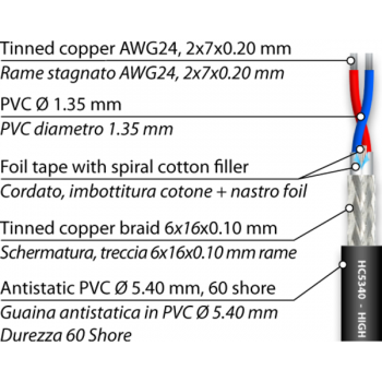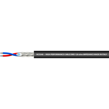 Cable DMX, 3 polos, 120Ohm, 90% de blindaje, 5,40mm de diámetro exterior. Precio por metro, se vende en rollos de 100mtrs. Color gris.