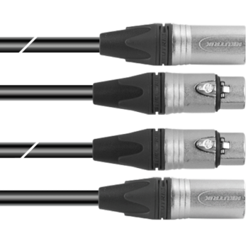 Pareja de adaptadores de cables DMX HC5340. Conectores Neutrik XLR(m) 3p->XLR(f) 5p / XLR(f) 3p->XLR(m) 5p, L.0.5m. Negro.
