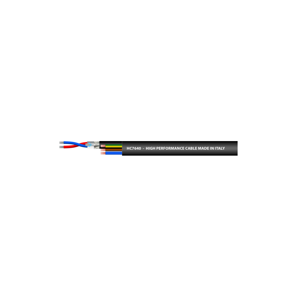Manguera para alimentación / audio balanceado o DMX, 3x1,5 + 2x0,22mm2. Precio por metro, se vende en rollos de 100mtrs. Color negro.