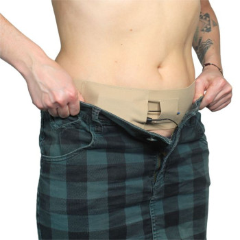 Correa para cintura de 1 bolsillo horizontal. Talla M: 100cm. Color beige. Contiene un bolsillo para poder doblar el cable, sin la necesidad de usar ningún sticky. bolsillo pequeño de 8,9x7,8cm(para petacas miniatura, cómo Wisycom MTP61).