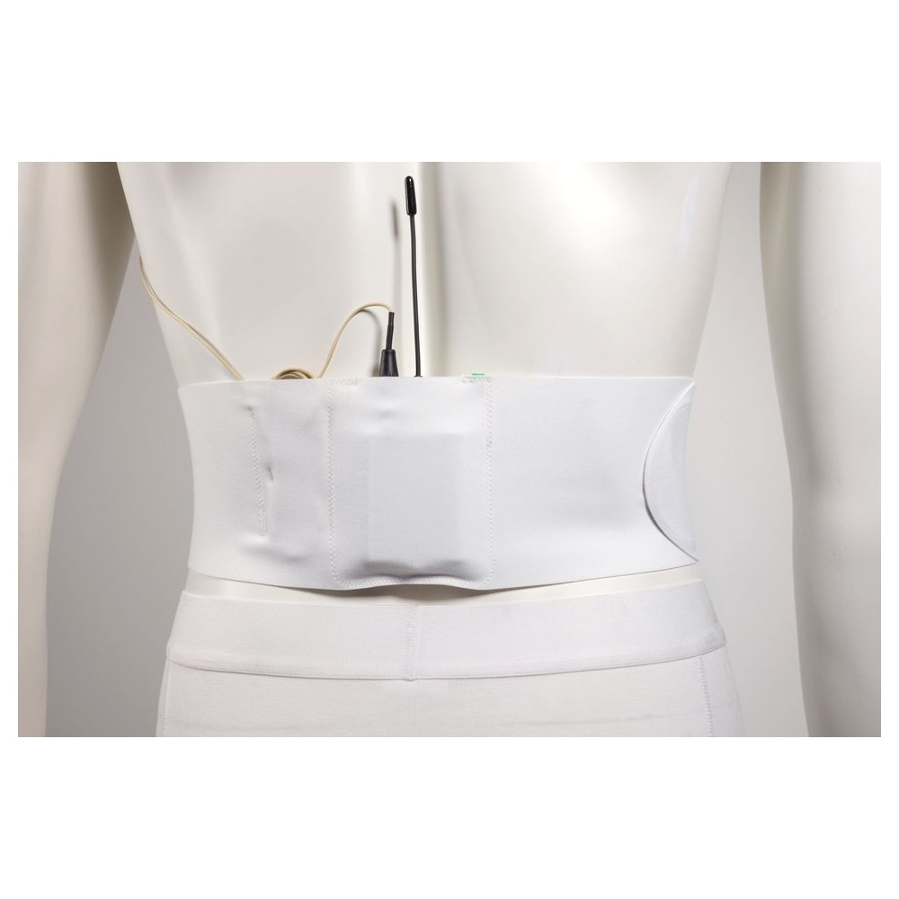 Correa para cintura de 1 compartimento pequeño. Talla L: 120cm. Color blanco. Contiene un compartimento para poder doblar el cable, sin la necesidad de usar ningún sticky. Compartimento pequeño de 8,9x7,8cm(para petacas miniatura, cómo Wisycom MTP61).