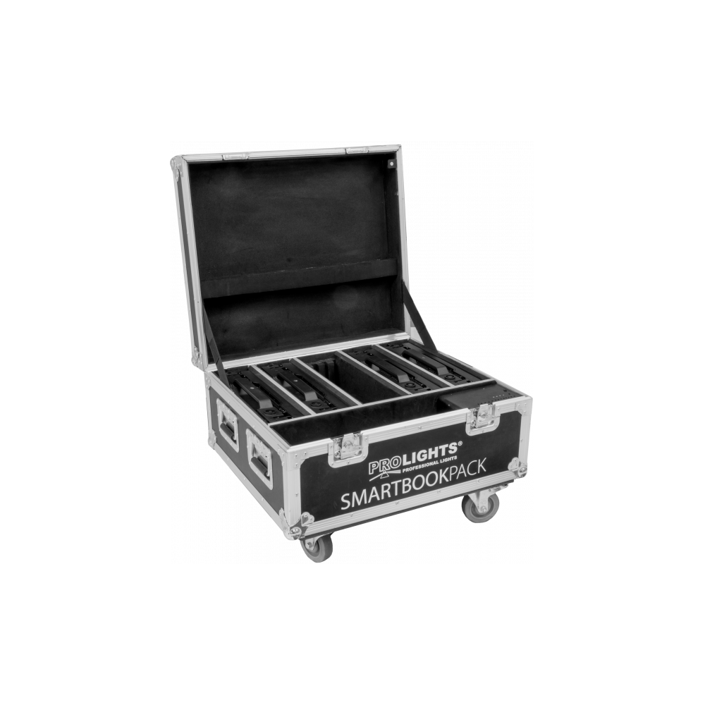 Flight-Case para 4 SMARTBOOK1, Cargador de batería incluido. 38'4Kg (72Kg con los 4 SmartBooks). Dimensiones (LxHxW): 685x340(470 con ruedas)x600 mm