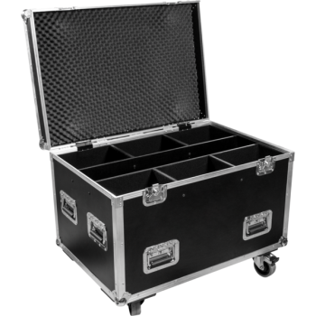 Flight-Case para albergar 6 unidades STUDIOCOB/VERSAPAR. Dimensiones (LxHxW): 855x539(699 con ruedas)x580 mm. Peso 19,5 Kg