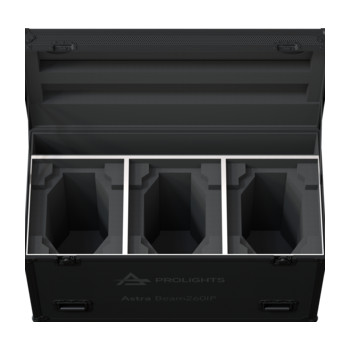 Flight case para 3x ASTRABEAM260IP. 60 Kg. (146 Kg con 3x ASTRABEAM260IP). (LxHxW): 1.200x833(700 SIN Ruedas)x600 mm.