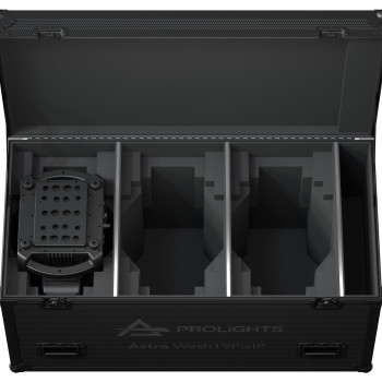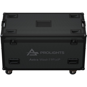 Flight case para 3 ASTRAWASH19PIXIP. LxHxW): 1.200x772 (641 without wheels)x600 mm. 55Kg. (130 Kg con las 3 unidades de ASTRAWASH19PIXIP
