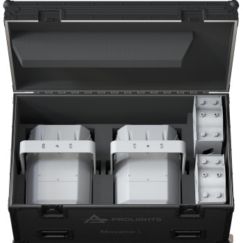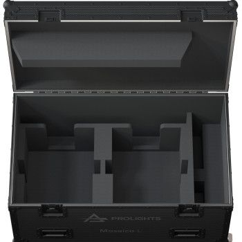 Flight case para hasta 2x MOSAICOL con compartimientos para accesorios. 41 Kg. (84 Kg con 2x MOSAICOL). (LxHxW): 1.000x648(518 SIN Ruedas) x600 mm. Puede albergar 2x MOSAICOL y 2x MOSAICOBRACK con tornilleria + cableado, adaptadores y pequeños accesorios.