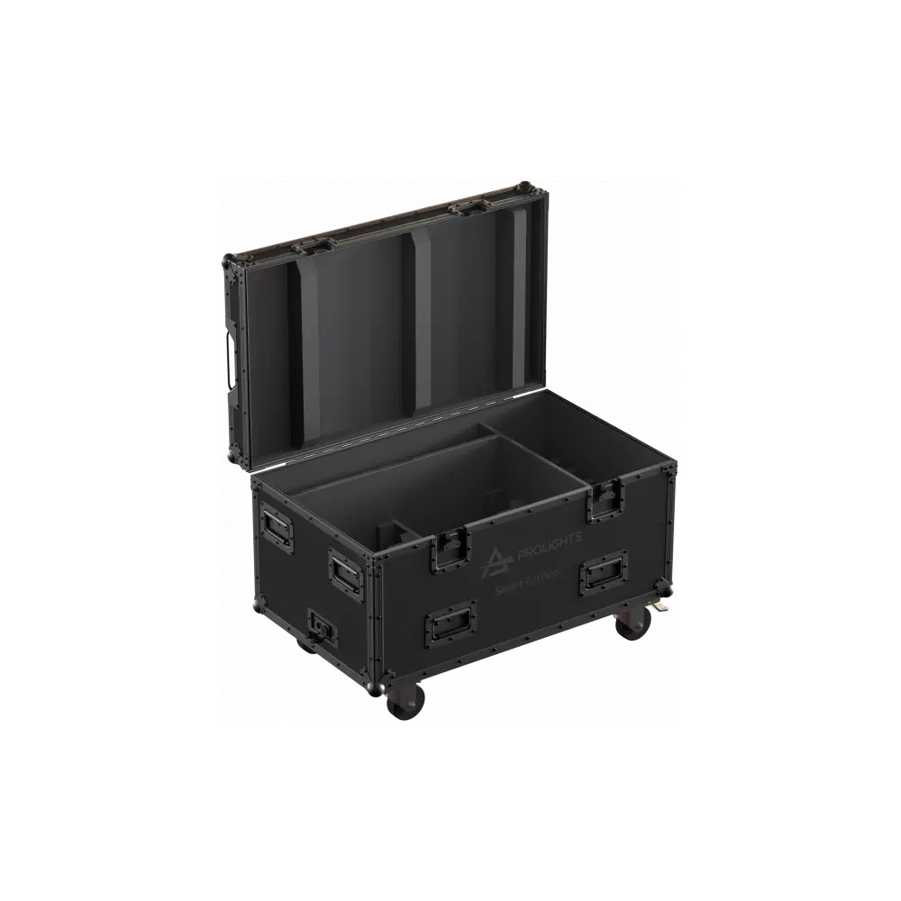 Flight-Case preparado para 4x SMARTBATPLUSWASH, con cargador AC interno para las baterías. (LxHxW) 1000x701(571 con ruedas)x600 mm. 48Kg