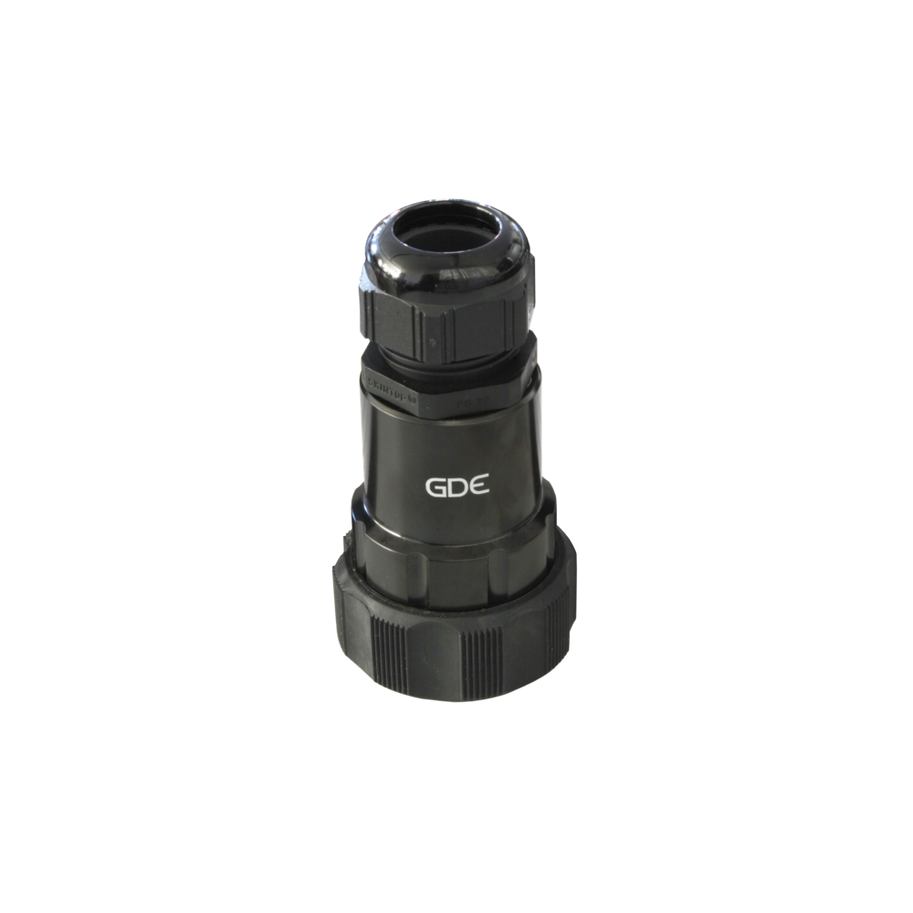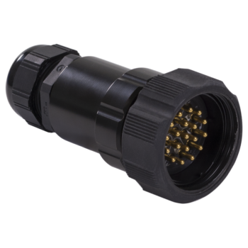 Conector SPIDER con carcasa de Aluminio Macho aereo. 19 contactos bañados en oro. 25A. Rosca para ensamblaje. Estopa PG29, IP64 Peso 0'25kg.