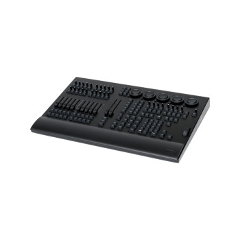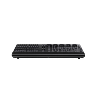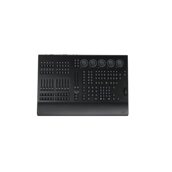 El área de comando tiene el mismo aspecto que en las consolas grandMA3, incluyendo cinco codificadores duales y 40 reproducciones separadas para controlar directamente 4.096 parámetros.