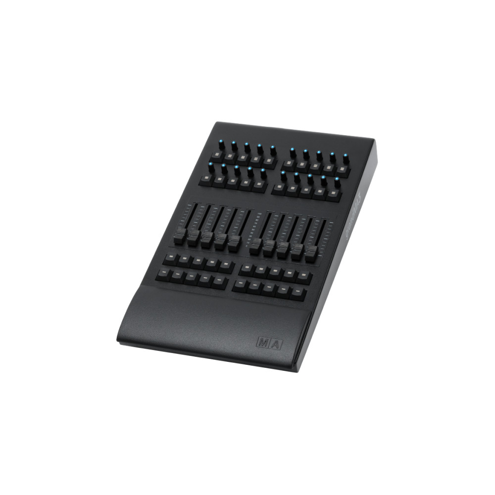 Si necesita atenuadores adicionales en su sistema grandMA3 onPC, el fader wing grandMA3 onPC es la extensión de reproducción de hardware perfecta para usted.