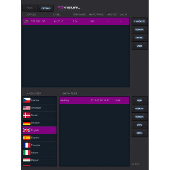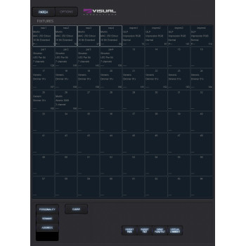Permite patchear hasta 512 canales DMX divididos en 64 fixtures, ya sean cabezas móviles o iluminación fija.