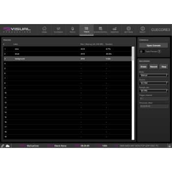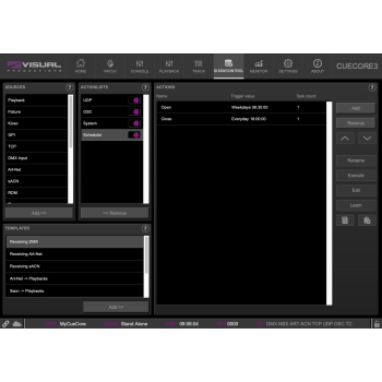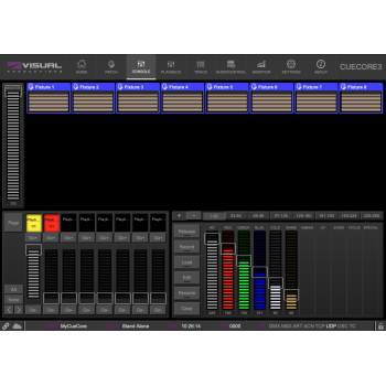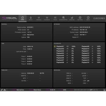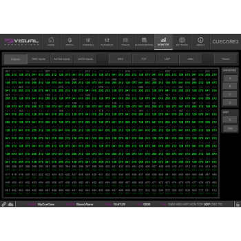 Permite la gestión en 16 playbacks de hasta 128 grabaciones DMX, ArtNet, sACN ya sean secuencias fijas o shows.