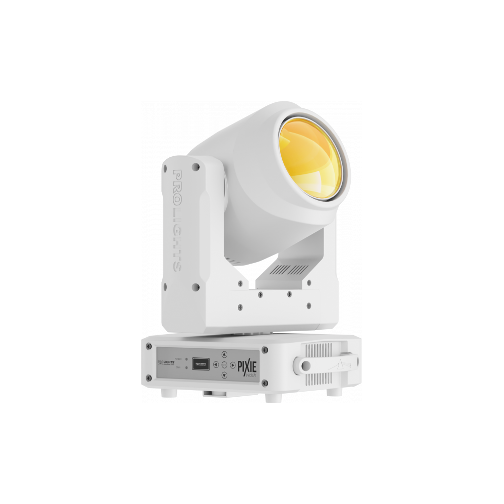 Cabeza Móvil Beam/Wash Blanca con Led de 60W RGBW con flujo de 1.230 Lúmenes. 3.996 lux 6° @5m. Vida Led >70.000 h >70%. Mezcla de color aditiva RGBW. CTO con presets de 2.800°K~8.000°K, Rueda de color Virtual con Presets predefinidos. Zoom motorizado progresivo de 6°~50°. Dimmer y Shutter con macros pregrabadas con velocidad ajustable. Pan 540° y Tilt 260° 16bits. Protocolo DMX512 por conectores XLR5 pins In/Out, Control 13 y 16 canales. Batería para la operación del display sin alimentación. Sistema de refrigeración por ventiladores muy silenciosos. Alimentación 100~240 VAC 50/60 Hz por conector Neutrik PowerCON, Consumo 113W. IP20. Color exterior Blanco. Dimensiones (WxHxD): 253x329x205 mm, Peso: 7 kg.