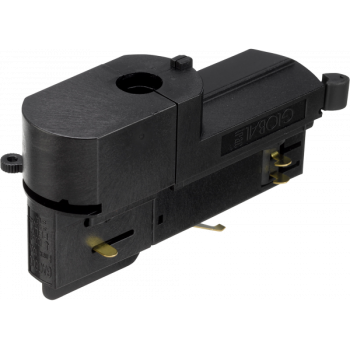 Adaptador Negro para carril Global Pulse con DMX/DALI (TrackAdaptor CON Señal), 3-Circuitos seleccionables de 10A. Slot de conexión 100N, Boquillas roscadas NAXTSA57129 M10 o NAXTSA55129 M13 y tuercas NO incluidas. color negro.