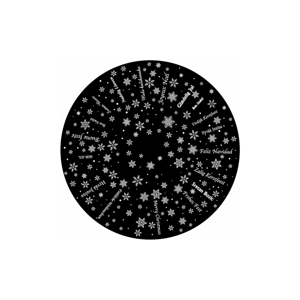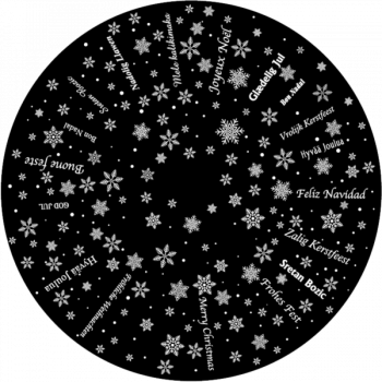 Gobo para Rueda de efectos en cristal de Borosilicato. Negro con Nieve y felicitaciones en Blanco. Diámetro exterior de Ø105 mm.