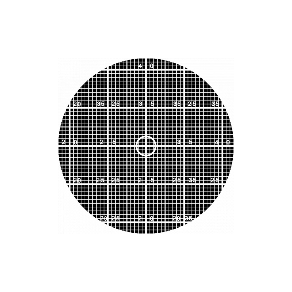 Gobo Mapping ECLDisplay, MiniECL y GalleryECL. Tamaño E en cristal de Borosilicato para mapear perfectamente las superficies de fachadas etc. Tamaño E (BW) Gobo Ø37mm - img Ø23mm, (Color): Ø37mm - img Ø23mm