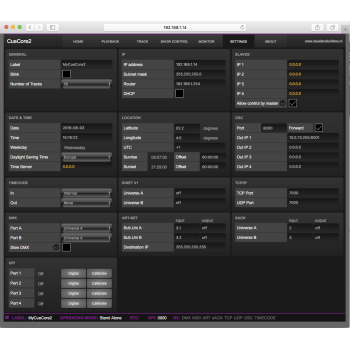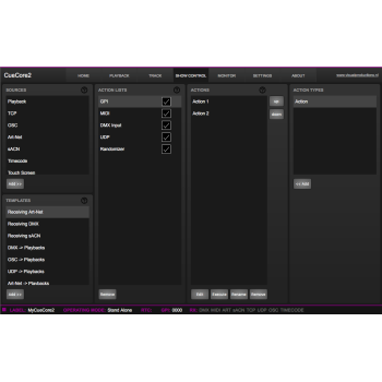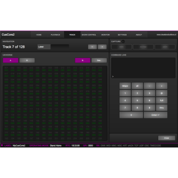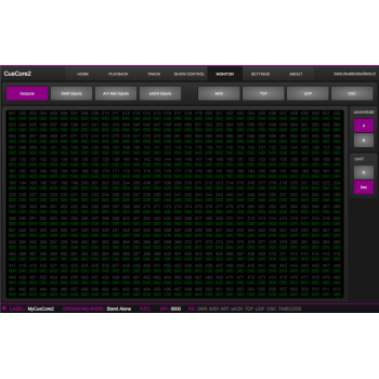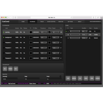 Permite la gestión en 6 playbacks de hasta 128 grabaciones DMX, ArtNet, sACN ya sean secuencias fijas o shows.
