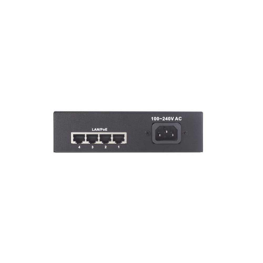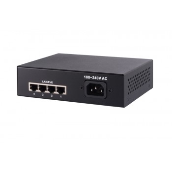 Distribuidor PoE+ Dante con 4 salidas de 30W de Potencia por puerto más puerto UpLink. Dimensiones (AlxAnxPr) 44 x 160 x 122 mm. Peso 0,8Kg.