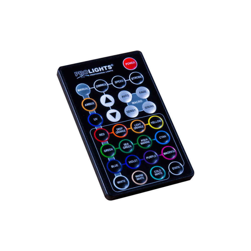 Controlador Remoto IR RGBWA, 29 botones, manual/Color Estático, auto programs, fade.Compatible con Smart Torch, Smart Disk, Tabled-C y -W, Smart Tower, Smart Book, Smart Modula, y ECLNANOPANELTWC