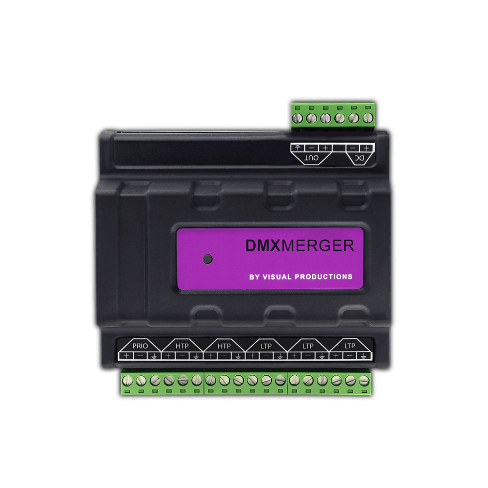 Mezclador de señales DMX con entrada de prioridad, 2 entradas HTP y 3 entradas LTP.