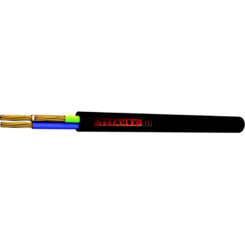 Cable de corriente TITANEX superflexible de 3x6mm, 450/750V. Retardante de Fuego según la norma IEC/EN 60332-1-2 (NO C2). Puede instalarse al aire libre o enterrado mediante accesorios mecanicos de proteción extras. 7 V/A. Km. Peso 346 gr/m.
