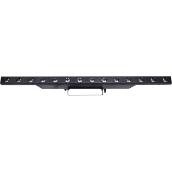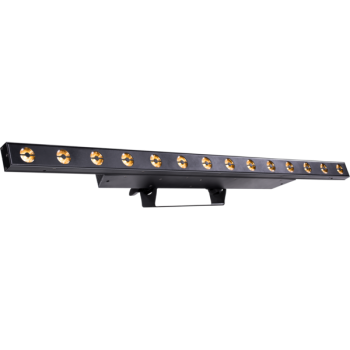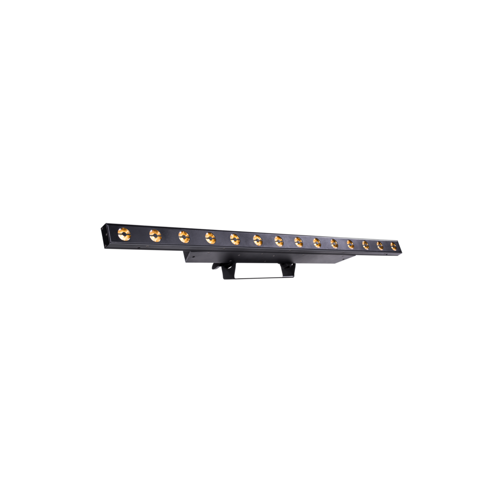 Barra Batten Multiled con 14x3W CREE 2.800°K y Pixel Effects. Vida Led >50.000 h >70%. Flujo lumínico de 1.186 lúmenes. 1.350 lux 7° @5m. Macros de efectos y patrones en los Pixels pregrabados con control individual de cada uno de los 14 Pixels. Temperatura de color cálida con temperatura de color de 2.800°K. Ángulo fijo de 7° (8° en ¹/10 de Peak Angle), creando unos haces muy estrechos y definidos para conseguir efectos impactantes como cortinas de luz, efecto Jaula etc. Dimmer y Shutter con macros pregrabadas con velocidad ajustable. Protocolo DMX512 por conectores XLR 3pins In/Out. Control: 4 / 14 o 19 canales. Sistema de refrigeración pasiva sin ventiladores, que lo hacen completamente silencioso. Alimentación 100~240 VAC 50/60 Hz por conector Neutrik PowerCON In/Out. Consumo 49W. IP65 de protección Waterproof. Dimensiones (WxHxD): 1.000x169x58 mm. Peso: 3'5 Kg.