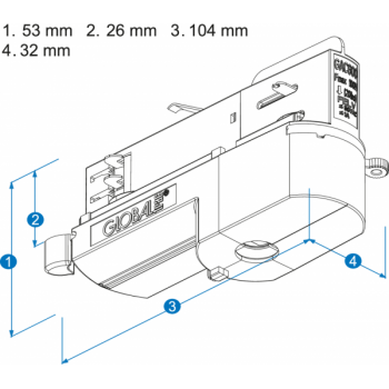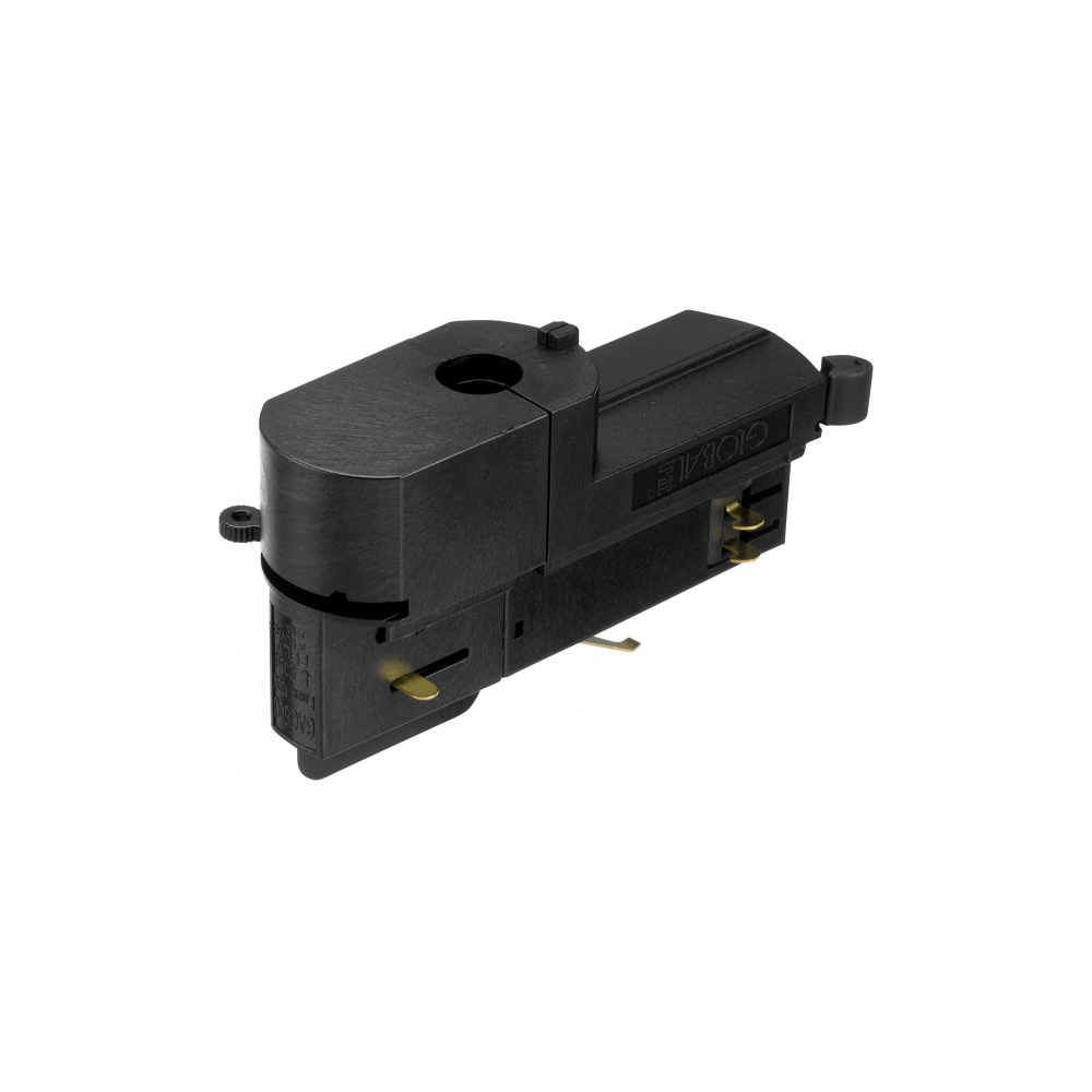 Adaptador Negro para carril Global Pulse (TrackAdaptor SIN Señal), 3-Circuitos seleccionables de 10A. Slot de conexión 100N, Boquillas roscadas NAXTSA57129 M10 o NAXTSA55129 M13 y tuercas NO incluidas. color negro.