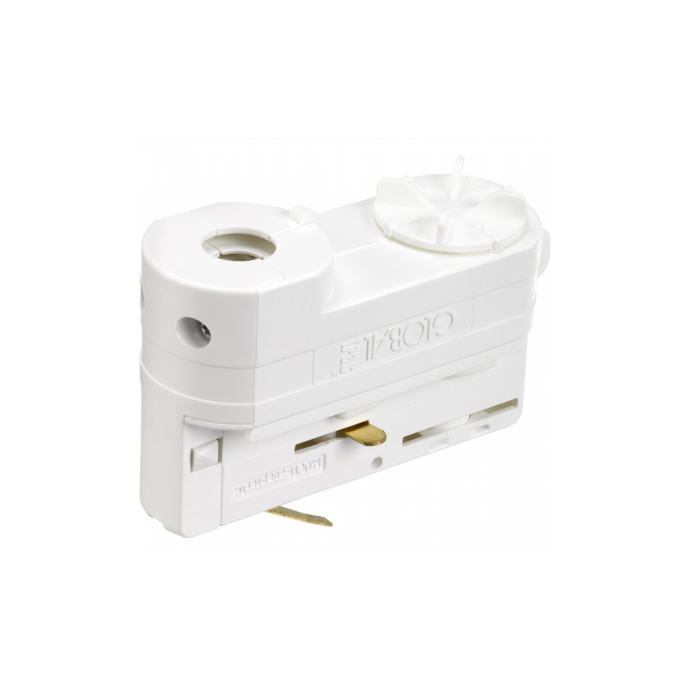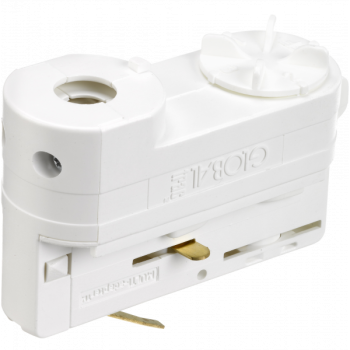 Adaptador Blanco para carril Global Pulse (TrackAdaptor SIN Señal), 3-Circuitos seleccionables de 10A. Slot de conexión 100N, Boquillas roscadas NAXTSA57129 M10 o NAXTSA55129 M13 y tuercas NO incluidas. color Blanco.