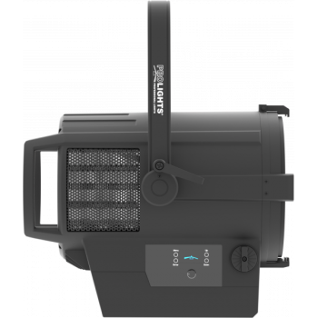 Proyector Fresnel PO con fuente Led con 507W Blanca Fría para conseguir la luz de un Fresnel de descarga de 1,2KW y altísima precisión cromática. CRI >91 R9 >82, TM30-15RF: 93 / 104 - TLCI: 94. Temperatura de color de 5.600°K. Diseñado para cubrir las necesidades de un Fresnel con lámpara de descarga de 1'2KW con lente de Ø250mm, con las ventajas de la fuente Led como, regulación de intensidad, durabilidad, estabilidad y su capacidad de proyectar luz blanca de la mayor calidad durante toda la vida del proyector Zoom manual de 15° a 45° operado por Mando giratorio en el lateral. Dimmer y Shutter con macros pregrabadas con velocidad ajustable y con frecuencias PWM seleccionables desde 600Hz a 25kHz. Todas estas características lo hacen ideal para Broadcast, Eventos corporativos y Teatro. Visera de 4 palas con 4 aletas (Mariposa) y Bulón de 28 mm con sistema BiPin anti giro incluidos. Lira con Campanas para ser operados con Pértiga (Pole-Operated / PO). Protocolo DMX512 y RDM por conectores XLR5 pins In/Out. Control por Knob o 1 / 2 - 1 / 2 - 2 / 3 o 5 canales. Sistema de refrigeración líquida y convección combinadas que lo convierte en muy silencioso. Alimentación 100~240 VAC 50/60 Hz por PowerCON True1 In/Out, Consumo máx. 466W. IP20. Color del recubrimiento exterior Negro. Incluye Visera ECLFR2KBD, Lira Pole Operated con bulón 28mm, portafiltros ECLFR2KTPG y Cable de Puntas peladas a PowerCON True1 de 1'5 metros. Dimensiones (WxHxD): 421x537x456 mm. Peso 17'2 Kg.