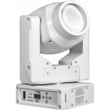 Cabeza Móvil Beam Blanca Led de 14W 6.200°K, flujo de 577 Lúmenes. 18.400 lux 2'5° @5m. Vida Led >30.000 h >70%. 1 rueda de color con 14 colores + blanco, incluyendo un CTO y un CTB. Ángulo de proyección fijo de 2'5°. Dimmer y Shutter con macros pregrabadas con velocidad ajustable. Prisma circular de 8 caras con rotación bidireccional e indexación. Pan 540° y Tilt 270° 16bits. Auto Mode con programas pregrabados y velocidad variable. Sound Mode con activación por micrófono integrado y control de la sensibilidad. Protocolo DMX512 y RDM por conectores XLR5 pins In/Out. Control 8 o 10 canales. Sistema de refrigeración por ventiladores muy silenciosos. Alimentación 100~240 VAC 50/60 Hz por conector Neutrik PowerCON, Consumo 31'9W. Color Exterior Blanco. IP20. Dimensiones (WxHxD): 220x343x170 mm, Peso: 5 kg.