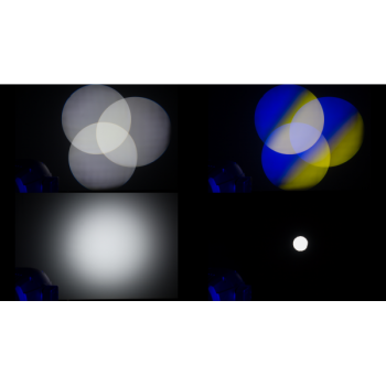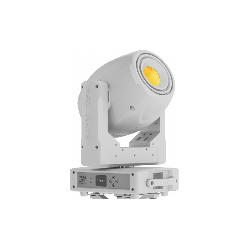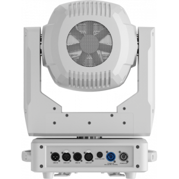 Cabeza Móvil Spot Blanca Led de 240W 7.000°K, flujo de 12.459 Lúmenes. 4.820 lux 20° @5m. Vida Led >50.000 h >70%. 2 ruedas de color con 7 colores cada una haciendo un total de 14 colores + blanco. Incluyendo un CTO y un CTB. 1 Rueda de 7 Gobos rotatorios indexables e intercambiables. e26'7mm_i23mm_t0'3mm. 1 Rueda de 8 gobos fijos. Enfoque motorizado. Ángulo de proyección fijo de 20°. Dimmer y Shutter con macros pregrabadas con velocidad ajustable. Prisma circular de 3 caras con rotación bidireccional e indexación. Filtro frost progresivo lineal 0-100%. Iris lineal motorizado de 5-100%. Pan 540° y Tilt 260° 16bits. Auto Mode con programas pregrabados y velocidad variable. Protocolo DMX512 y RDM por conectores XLR3&5 pins In/Out. Control 17 o 19 canales. Batería para la operación del display sin alimentación. Sistema de refrigeración por ventiladores muy silenciosos. Alimentación 100~240 VAC 50/60 Hz por conector Neutrik PowerCON, Consumo 316W. Color Exterior Blanco. IP20. Dimensiones (WxHxD): 355x500x257 mm, Peso: 17'3 kg.