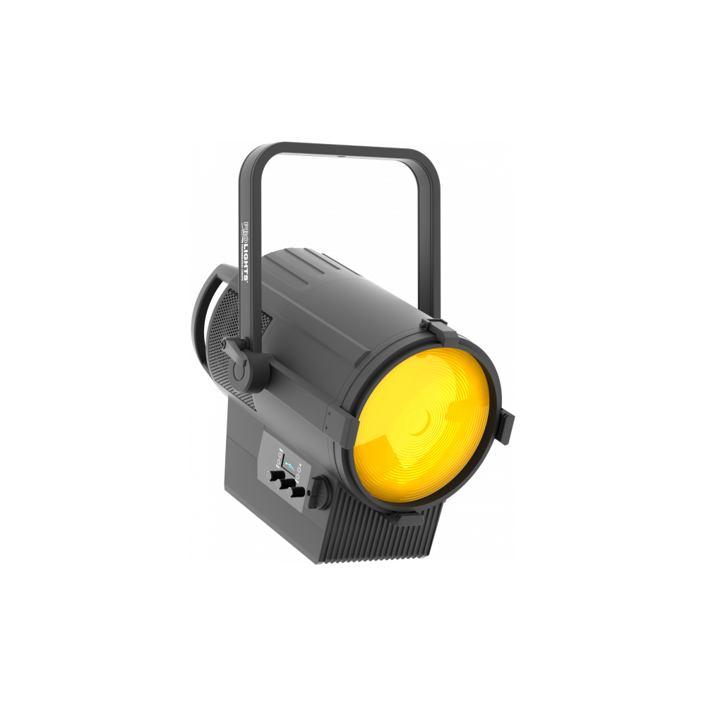 Proyector Fresnel con fuente Led con 507W con 6 colores ROrBBL para conseguir increíbles colores y Luz Blanca Variable de altísima precisión cromática. CRI >91 R9 >94, TM30-15RF: 88 / 107 - TLCI: 90'8. Temperatura de color variable desde 2.800°K a 10.000°K. Diseñado para cubrir las necesidades de un Fresnel convencional de 2KW con lente de Ø250mm, con las ventajas de la fuente Led y su capacidad de proyectar luz blanca de la mayor calidad. Zoom manual de 16° a 52° operado por Mando giratorio en el lateral. Dimmer y Shutter con macros pregrabadas con velocidad ajustable con frecuencias PWM seleccionables desde 600Hz a 25kHz. Canal dedicado para el control de la TC desde 2.800°K a 10.000°K y Rueda Color Virtual con presets. Corrección de ±Green, ±Magenta y Ámbar Shift, que lo hace ideal para Broadcast, Eventos corporativos y Teatro. Visera de 4 palas con 4 aletas (Mariposa) y Bulón de 28 mm con sistema BiPin anti giro incluidos. Protocolo DMX512 y RDM por conectores XLR5 pins In/Out. Control por Knob o 1 / 2 / 5 - 1 / 5 - 2 / 7 - 1 / 7 - 2 / 8 / 9 / 12 / 13 / 16 / 19 o 21 canales. Sistema de refrigeración líquida y convección combinadas que lo convierte en muy silencioso. Alimentación 100~240 VAC 50/60 Hz por PowerCON True1 In/Out, Consumo máx. 393W. IP20. Color del recubrimiento exterior Negro. Dimensiones (WxHxD): 421x537x456 mm. Peso 15'8 Kg.